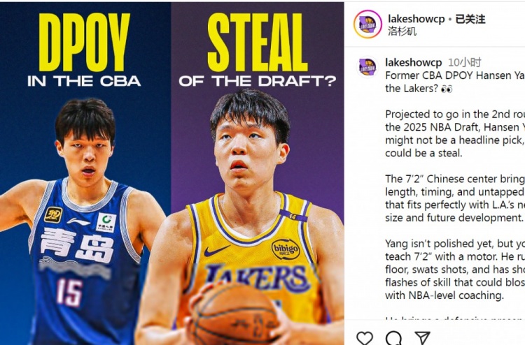 5月24日讯 今日湖媒Lakeshow在社媒发文谈到了中国球员杨瀚森。Lakeshow写道:“前CBA最佳防守球员杨瀚森有望加盟湖人? 预计在2025年NB...