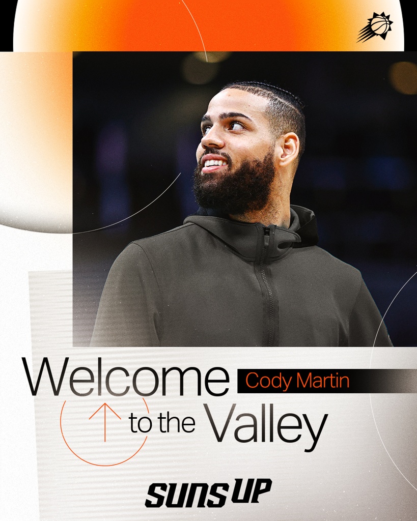 太阳送出中锋努尔基奇和2026年首轮签,从黄蜂得到前锋科迪-马丁、控卫米西奇和2026年次轮签。
