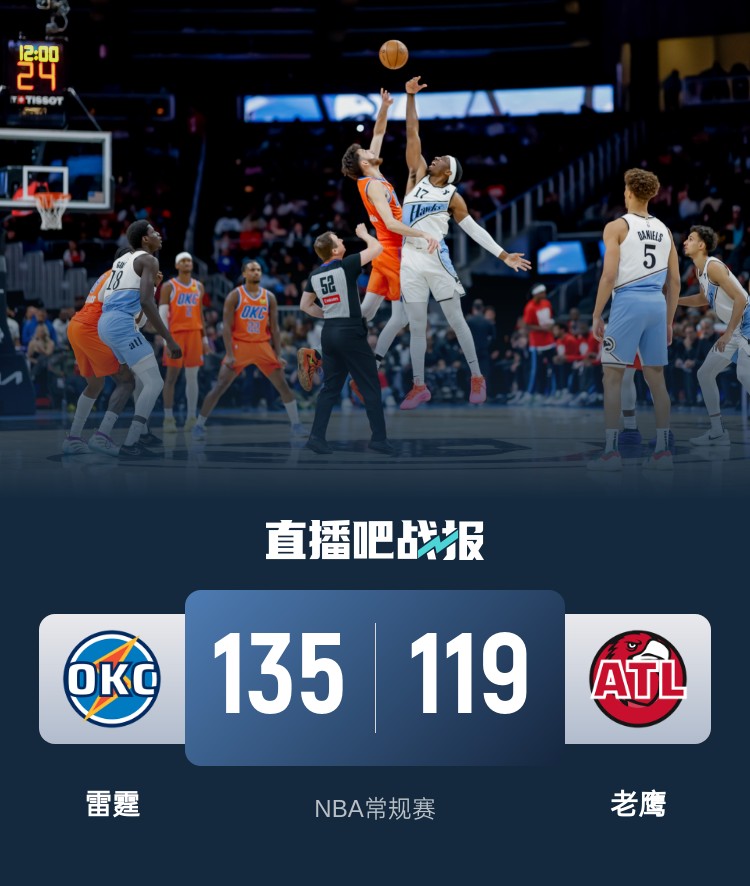 3月1日讯 NBA常规赛今日继续开打,老鹰坐镇主场迎战西部第一的雷霆。