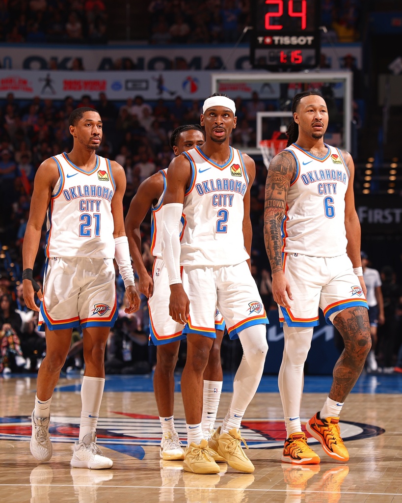 2023-24赛季,戴格诺特教练带着25岁的亚历山大、22岁的杰伦-威廉姆斯、21岁的霍姆格伦、24岁的多特、21岁的基迪、20岁的卡森-华莱士、21岁的杰林-威廉姆斯、24岁的以赛亚-乔、25岁的阿隆-维金斯、29岁的肯里奇-威廉姆斯更进一步,他们进攻效率第3、防守效率第4,常规赛豪取57胜25负,登顶西部第一!