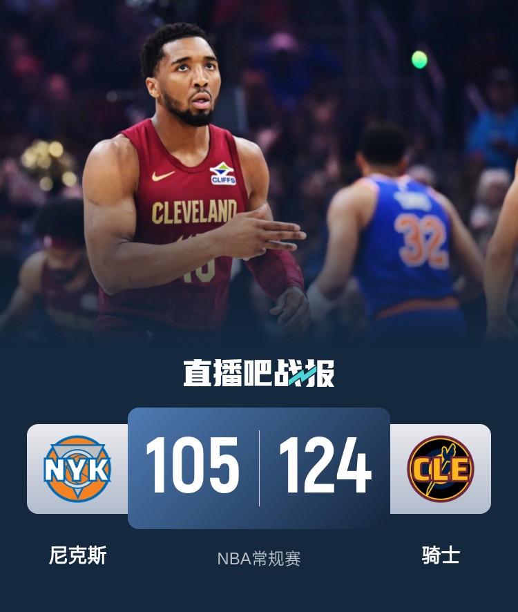 4月3日讯 NBA常规赛,骑士今日迎战尼克斯,前者上场比赛战胜快船,后者则是取得三连胜,此役布伦森、米罗和杰罗姆等人缺战。