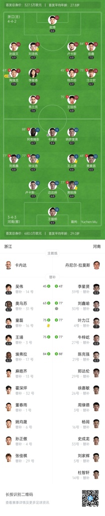全场比赛结束,浙江主场2-2遭河南绝平。