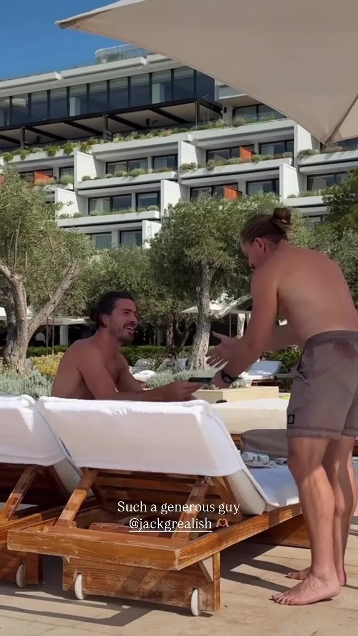 格拉利什近日疑似在希腊度假时被套路替陌生人买单,这位失宠的曼城球星结束漫长赛季后,正在希腊米克诺斯岛的豪华度假村享受假期。瑞典网红帕特里克-佩尔森在TikTok和Instagram发布的视频显示,他让这位英格兰国脚签名的账单实则是泳池餐厅的消费单。