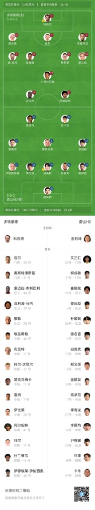 多特暂以4分排名第二,本场打平即可出线。蔚山HD两连败已提前出局。