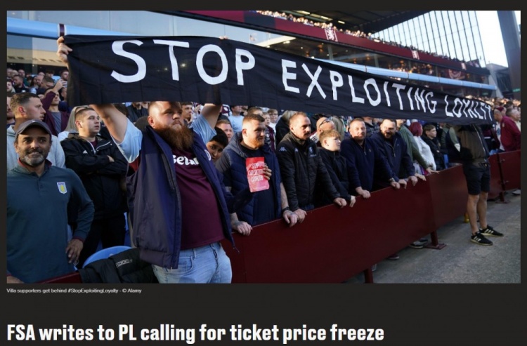 球迷组织FSA:已致信英超,呼吁在2025/26赛季前冻结联赛票价