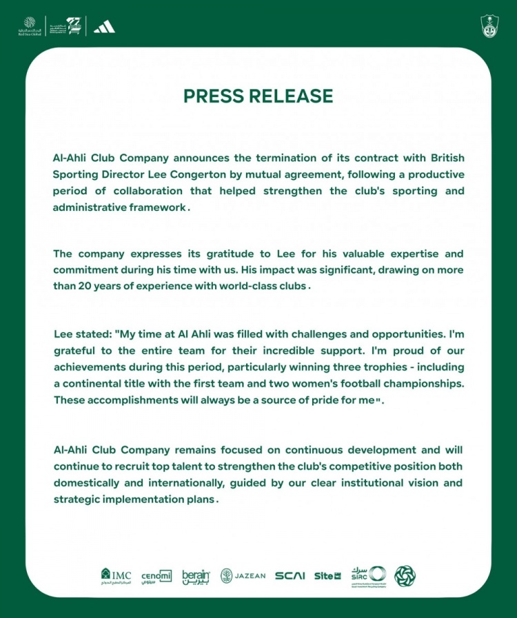 6月26日讯 吉达国民俱乐部官方宣布,与英国体育总监李-康杰顿协商一致终止合同。吉达国民俱乐部表示,此前俱乐部与李-康杰顿进行了富有成...